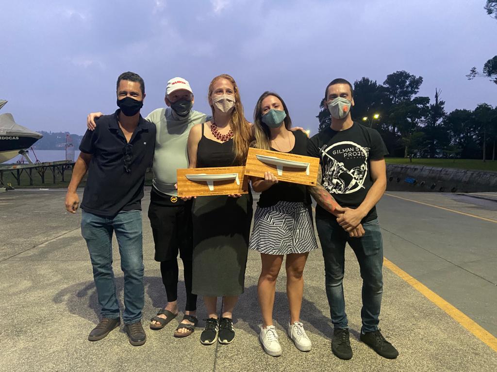 Roberto e Vitor Lugatto, respectivamente sócio e colaborador do TheModelBoatYard, entregaram os prêmios às atletas, uma réplica em ½ casco do barco campeão, OXALÁ.